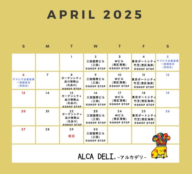 4月の出店予定のお知らせです ◆4月より毎週火曜日に 【ガーデンシティ品川御殿山】 に出店します ◆4月5日(土)・4月6日(日) 【ヤマヒサ古着倉庫さん】 に出店します 営業時間:10:00~ 場所:東京都世田谷区中町1-19-3等々力AIDAビル 今月も皆様のご来店を心よりお待ちしております . . . 【火曜日】 @東京都品川区北品川6-7-29 ガーデンシティ品川御殿山(shop stop) 11:30~14:00 【水曜日】 @東京都港区三田1-4-28 三田国際ビル(shop stop) 11:30~14:00 【木曜日】 @東京都港区港南1丁目8-15 Wビル(shop stop) 11:30~14:00 【金曜日】 @東京都港区海岸1丁目7 東京ポートシティ竹芝(shop stop) 11:30~14:00