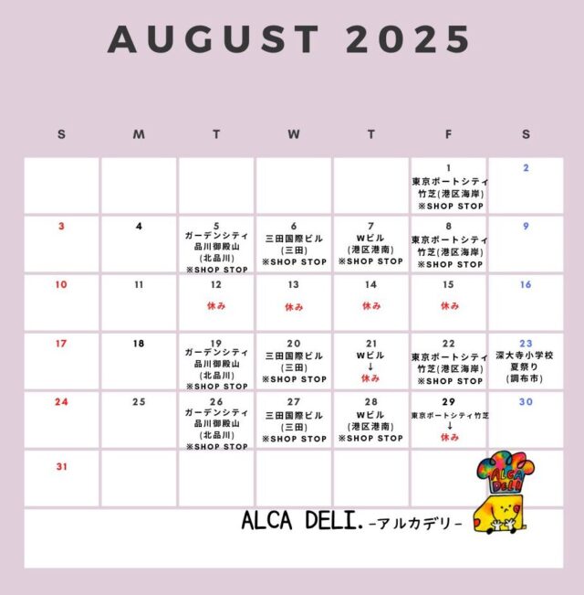 8月のお休みにつきまして、追加でのお知らせです ◆8月21日(木)はWビルに出店予定でしたが、 諸事情によりお休みさせていただきます ◆8月29日(金)は東京ポートシティ竹芝に 出店予定でしたが、 オーナー様のご都合によりお休みとなります ご来店予定だったお客様、申し訳ございません また次回のご来店を心よりお待ちしております